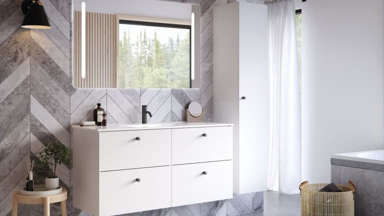 Se hvordan materialer som fliser og tre kan gi både funksjonalitet og et nytt utseende til badet ditt.